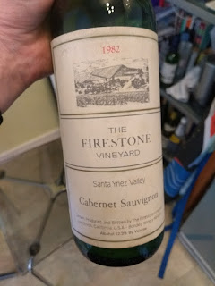 With the main course of slow-cooked chicken and braised lettuce, peas and mint, we had this 1982 Firestone Vineyard Cabernet Sauvignon which G picked up recently. There was an element of risk as it could have been terrible but instead it was amazing. Hurrah! I was amused by the label which informed us that the wine was 12.3% alcohol, but D told me that in this case the precision probably indicated actual, rather than spurious, accuracy. As he is one of the world's foremost experts on antique measuring instruments, I suppose I must defer to his opinion in these matters. As for the wine itself, G described it as "entirely pleasurable to drink" - it was soft, smooth, rich and sweet with hints of cocoa, stewed plums, mint and maybe even pontefract cake, and went down very easily.